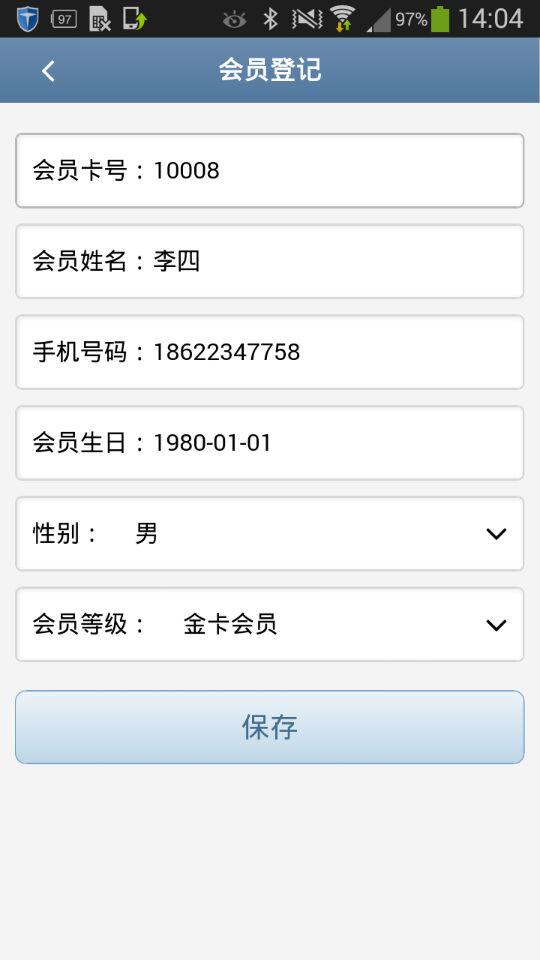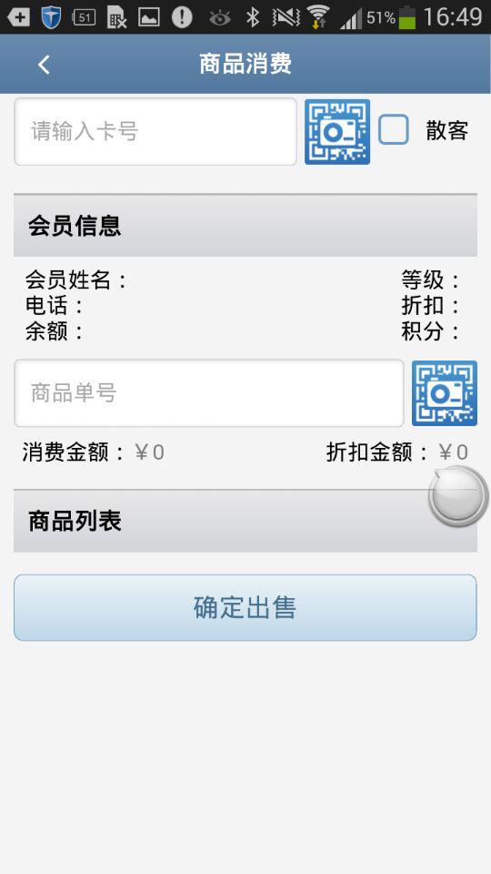 来选择扫描会员条形码以及二维码。如果是扫描二维码的话就很好的将这一APP与微信会员卡进行互通。会员可以通过打开微信会员卡里的二维码通过这块进行扫描,那么所有该会员的信息就会显示出来。