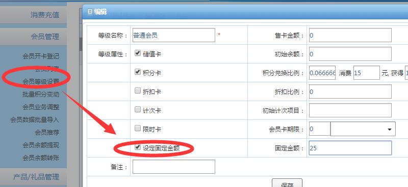 在蓝冠注册会员管理软件会员等里面有一个固定金额设置,每个会员等都可以设置不同的固定金额。比如,普通等洗车一次25元,高等会员洗车一次20元。
