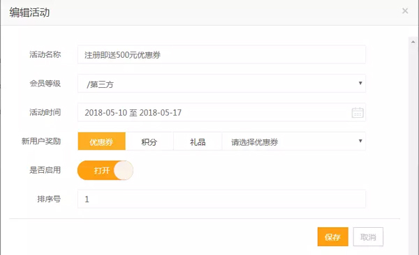 商可以根据店铺的实际情况,自由设置活动名称、活动时间和奖励类型。