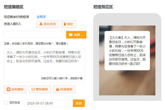 短信营销是维系会员的重要途径,活动信息、节日问候即时、定时送达,唤醒沉睡会员,刺激用户消费需求,这种方式切记操之过急、频繁的使用,否则会带来垃圾短信骚扰的影响。