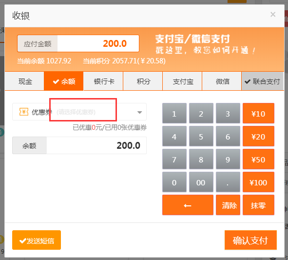 目前,通过系统发送的电子优惠券,主要有两种方式,一种是通过短信发送,另一种是通过微信发送,通过微信发送优惠券的前提是,这个会员必须是微信会员。