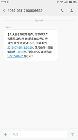 通过短信发送时,会员会收到带有优惠券号码的短信,到店消费后,凭短信中的优惠券号码核销。