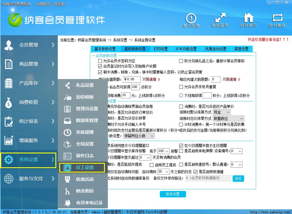 第二步,进入系统设置模块中的员工设置。